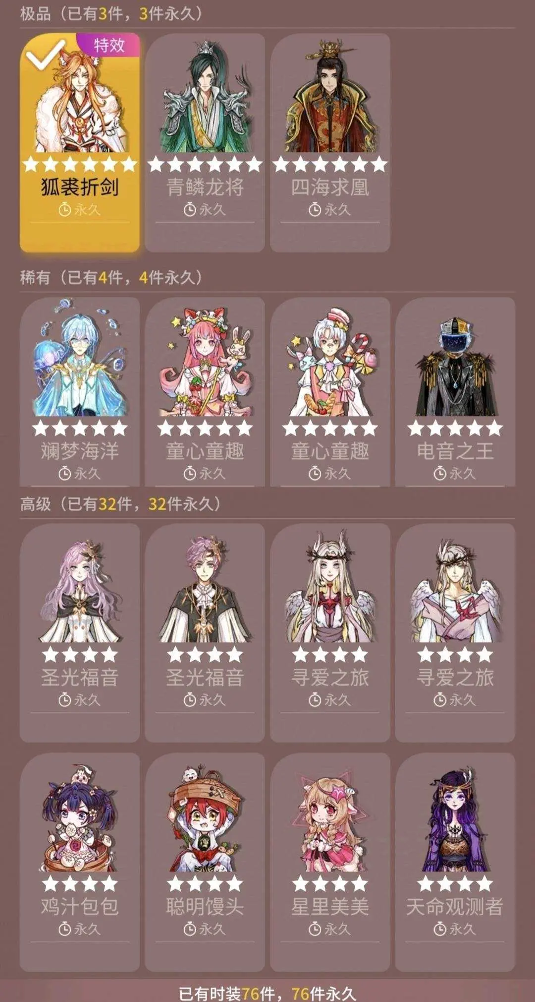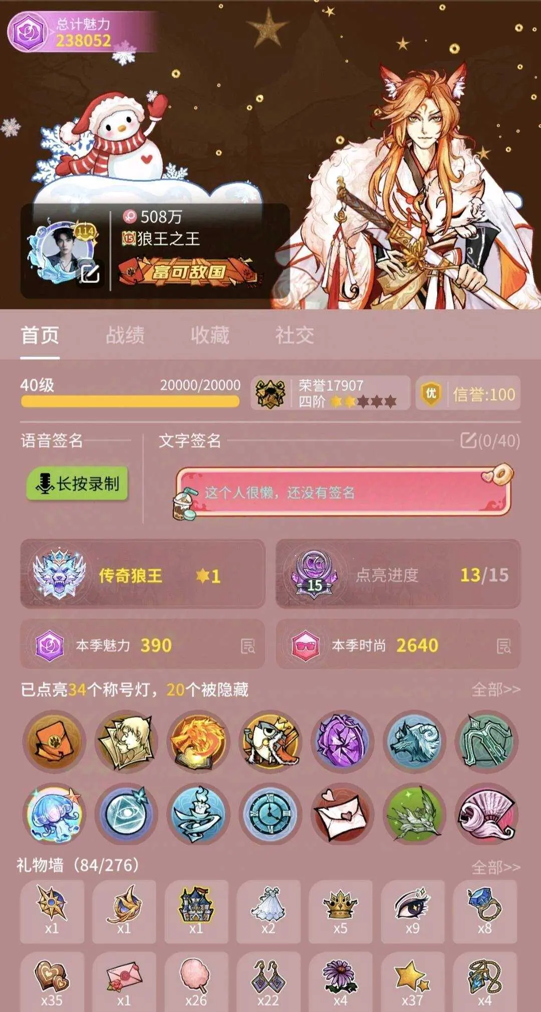 信誉分80❗V9三六星狐裘青鳞求凰✨富可敌国称号✨四阶双四星跑狼✨鹿语名片